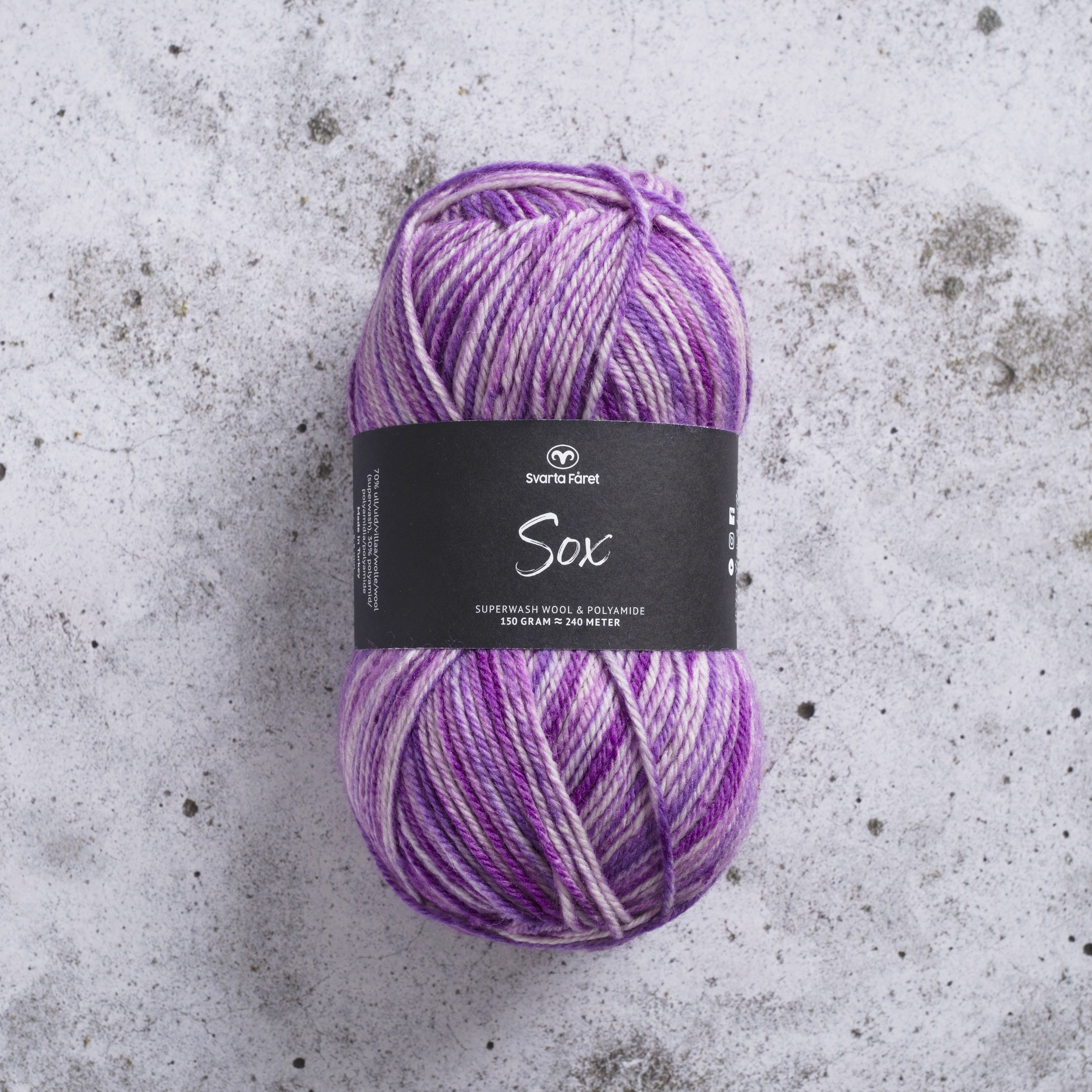 Sox från Svarta Fåret är ett klassiskt sockgarn i en slitstark och värmande blandning av ull och polyamid. Precis som namnet indikerar är detta det perfekta garnet när du vill sticka sköna sockor till hela familjen. Sox finns i enfärgat, melerat och slingat bara att välja.