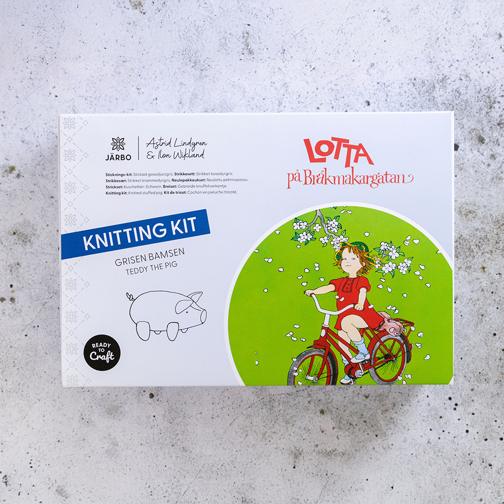 Komplett garn och mönsterpaket till grisen Bamse som Lotta på Bråkmakargatan hade.